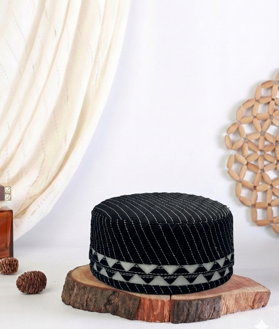 These prayer caps from Pakistan are a stylish and sophisticated addition to your wardrobe. Made with precision detailing and heavy pleating, these cotton caps come in a variety of colors to match your outfit perfectly. Whether worn for religious purposes or as a fashionable accessory, these caps create a polished and regal look.